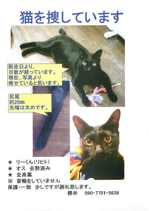 東京都練馬区にて、迷子の黒猫ちゃんを探しています。
