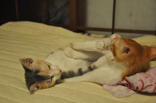 寝て、起きて、食べて、とっくみあって、たまに舐めあって、