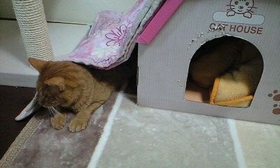 寝てるのかなと、さんちゃんハウスを覗いたら、