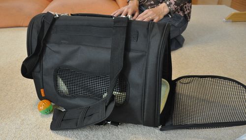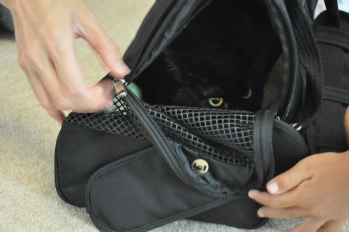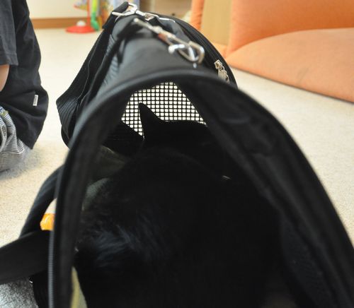 本当の家族様が買ってくれた、ちかちゃん専用のキャリーに隠れてしまいました。