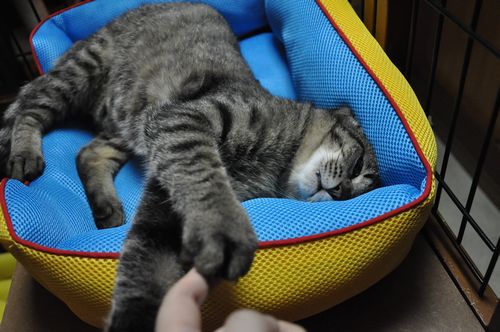 のときの肉球でパシッと指をつかんでくるかんじ。