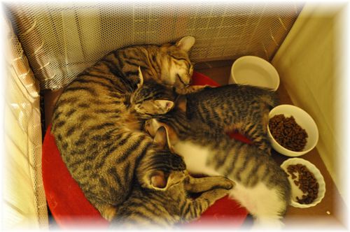 子猫たちは兄弟仲良く成長し、全員本当の家族にめぐり合っています。