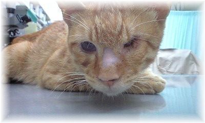 目が開くか開かないかの子猫のときに結膜炎を患い、そのまま瞬膜が癒着してしまったようです。