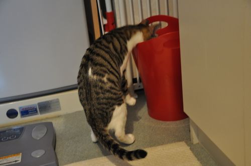 普通の、上が開いているゴミ箱ははじめて見るセッくんです。