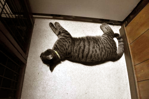 松なう。眠そうな猫ってたいていかわいい気がするんだけど松は(略) いや、最高愛してるんだけどね!#neko #cat 非家族募集 http://p.twipple.jp/94KFK