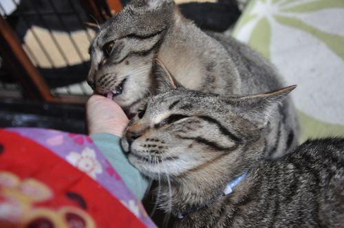 梅も松もカリカリ食べず缶詰ばかり舐め散らかす。カリカリにまぜこんでまぜこんでべったべたにしても缶詰だけ綺麗に舐める。カリカリだけだと一日の半分くらいしか食べない。敵は、手ごわい。