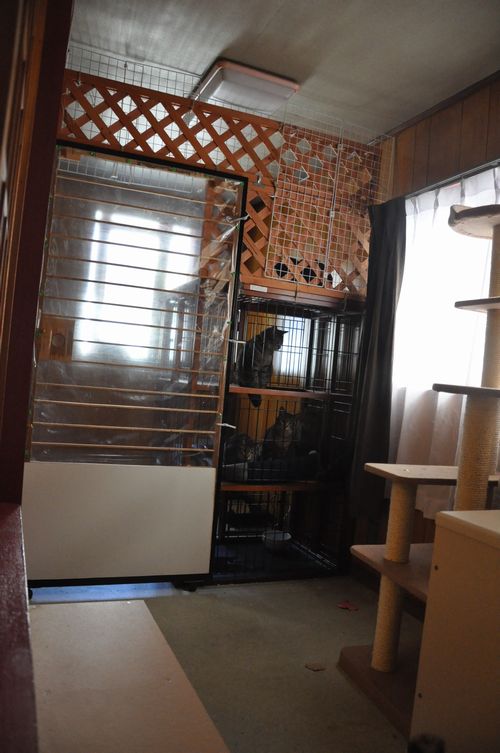 旧猫屋敷で使っていた襖を改造して作った扉(ベニヤ+ビニールクロス)