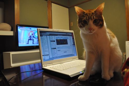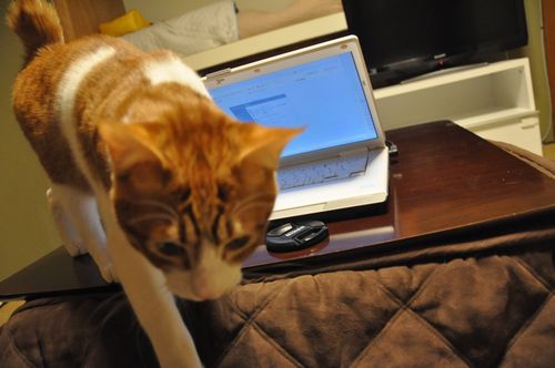 そして夜、今まさにPCのお邪魔虫。