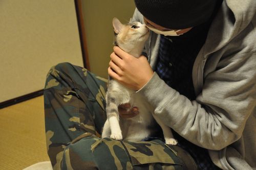 彼の人生で初めて触れ合った猫、ちぃちゃん。