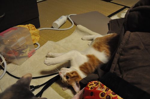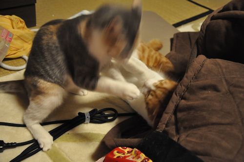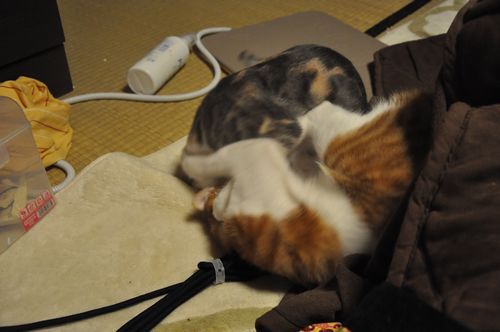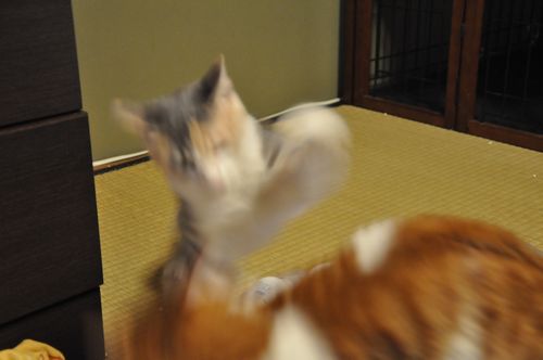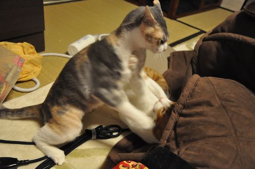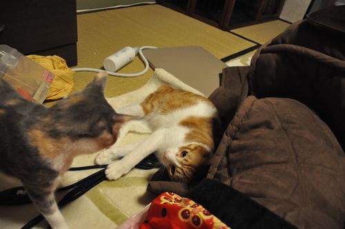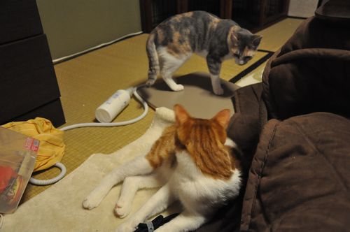 基本、猫と戦うより、人間とらぶっていたい2匹です。
