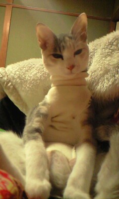 お腹の傷に触りそうだと気づいて即行箱座りさせました~。