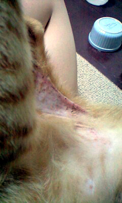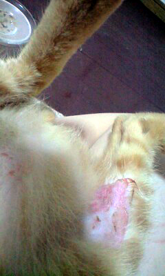 さん太が体を舐めて舐めて舐め壊してしまったのです。