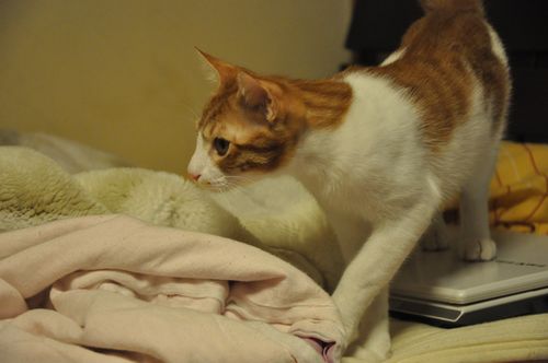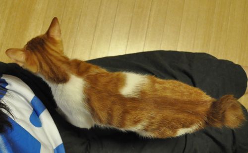 腰の脇に猫。