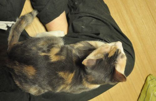 腿の上にがっちり乗るのがお好きな様子。