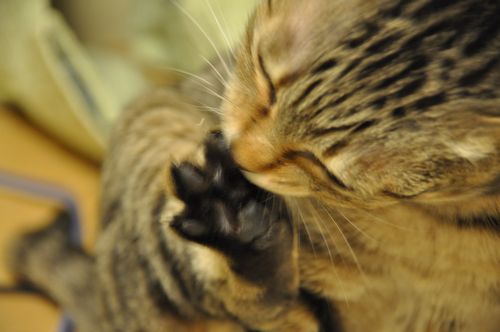 ネネに触ったら、子猫に触ったらとりあえずニンゲンの両手にスプレー。