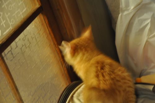 決して開かない6畳へのドアを眺めるマロン(ブレブレ)。