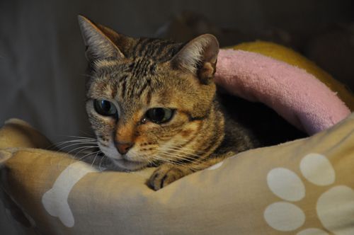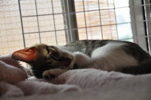 早くお薬が効くとよいのですが…本猫は元気いっぱいで気にならないようです