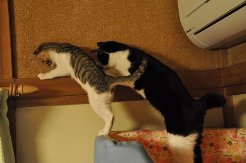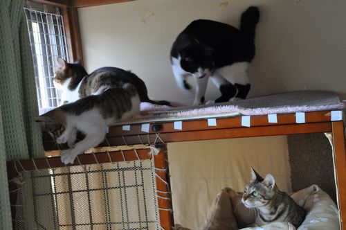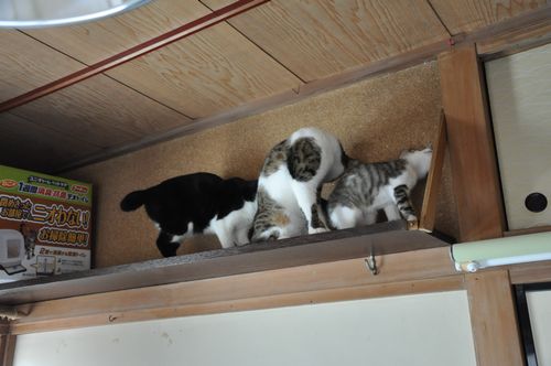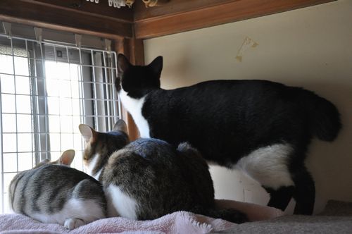 ケージ上の作りつけキャットウォーク(もどき)でも集合~☆