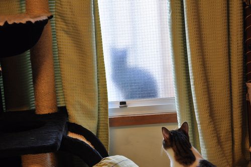 どうやら外のフラワーカバーにかけたよしずと窓の間に住み始めた様子。