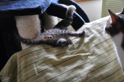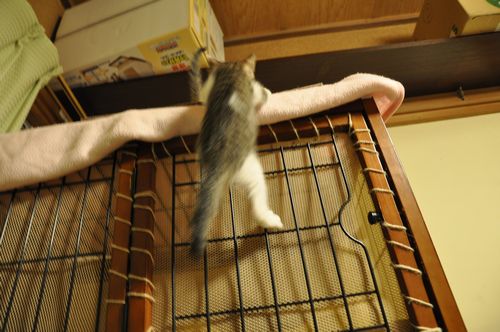 ミミはクライミング&ニンゲン指かじり。