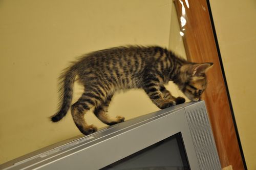 それに、梅松に習うわけでもなく、ちゃんとTVに下りてTV台に降りて。