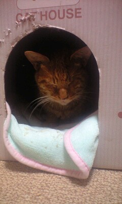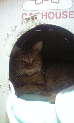 本当の家族様が買ってくれた、ちかちゃん専用のキャリーに隠れてしまいました。