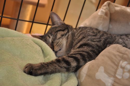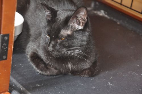 さんちゃん、今日の寒さがこたえてごはんもそこそこにさん太ハウスへ直行。