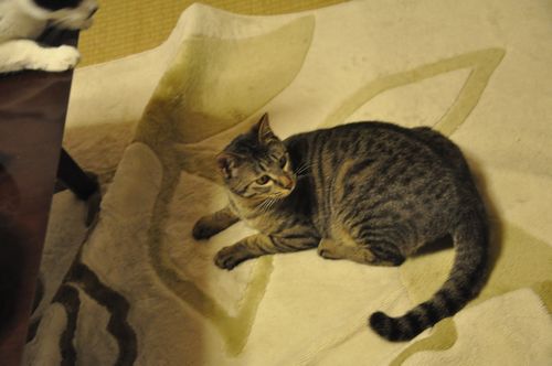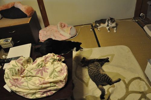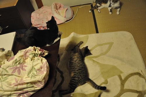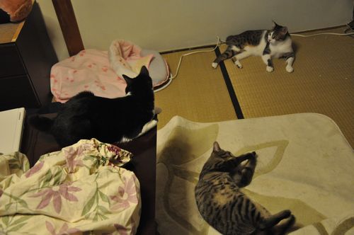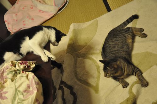 後から来て2段目からちょいちょいしているのが五飯。やる気なく寝そべりちょっかい。