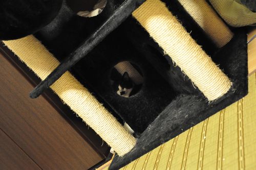 ケージを開けておいたら、一番に飛び出してきたミミ。