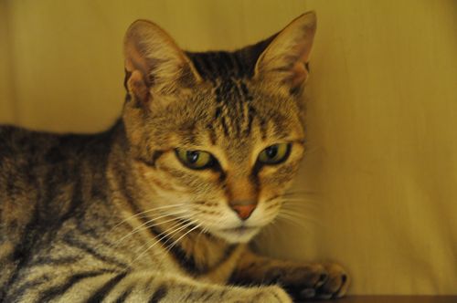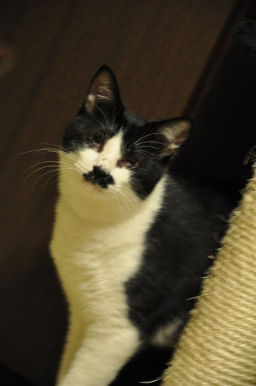 キジトラちゃんよりちょっと色が黒め、かなぁ?角度によっては白黒写真にみえるわぁ。