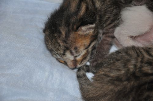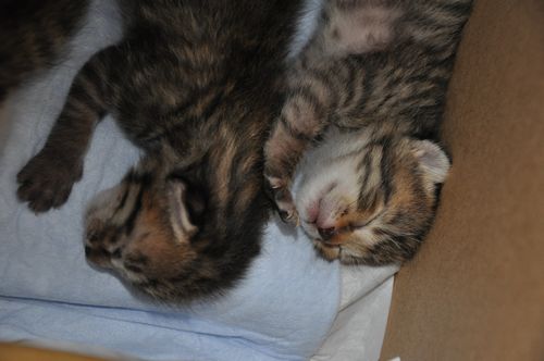 やっぱりキジトラちゃんのほうが白っぽいです。