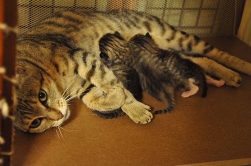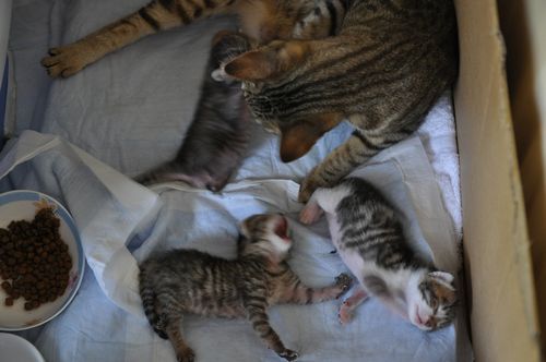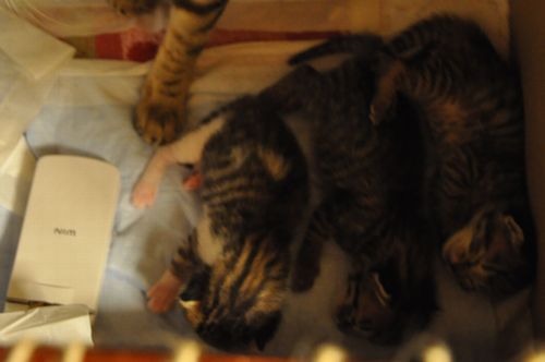 仔猫が鳴いたな~と思ったらママがすぐおっぱいをあげていました。
