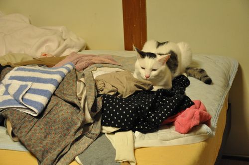 洗い立ての洗濯物が散らかってても、いたずらしない。