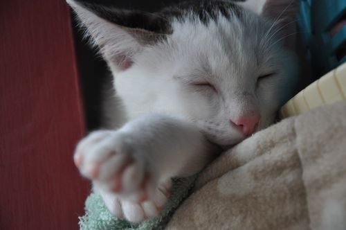 ニンゲンの腕の中で寝るのが好きな子もおるぜよ。