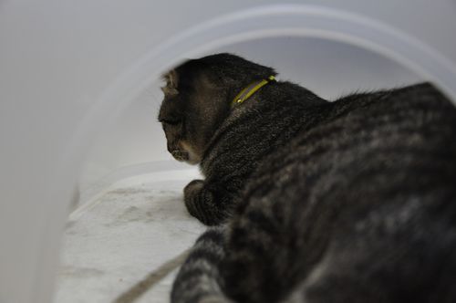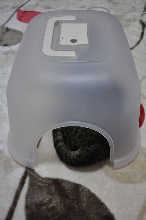 いっちゃん、トイレの蓋を置くと、