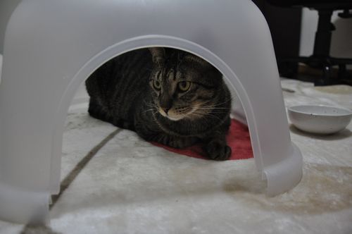 屋根付ベッドはおうちに用意してあるんですよ~。