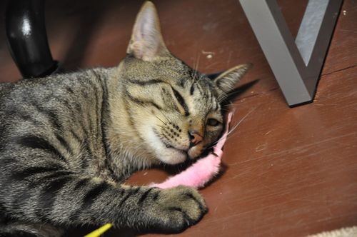 じゃらしで遊んでもらってうっとりし始める五飯。