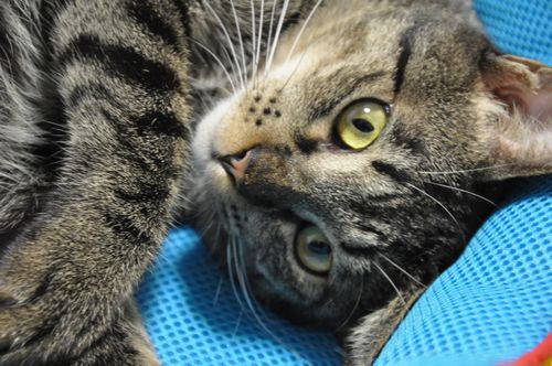 ムンッとした顔のクセに腹出しでどて~と寝ていると、