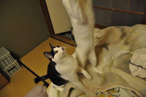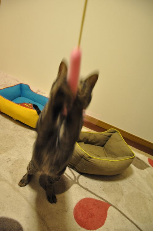 できるだけ距離を離してぶんぶん振っているだけのじゃらし遊び。