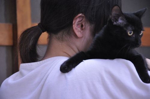 大好きな肩抱っこをされたルーちゃん。