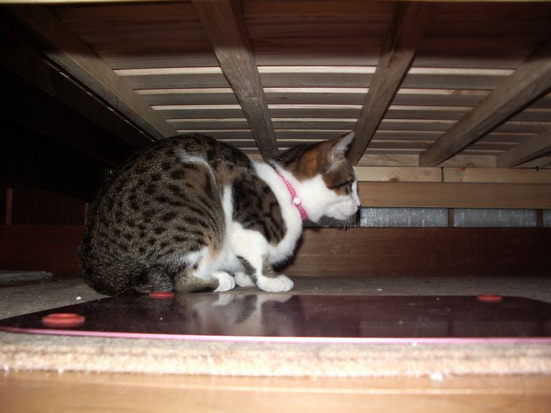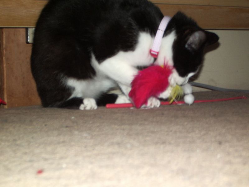 おもちゃを空中でフラフラさせても梅には反応できないため、
