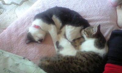 らがよく寝ているときはこちらもじっとしてないと、文句たらたらみゃんみゃこにゃんぽこ大合唱になっちゃう。